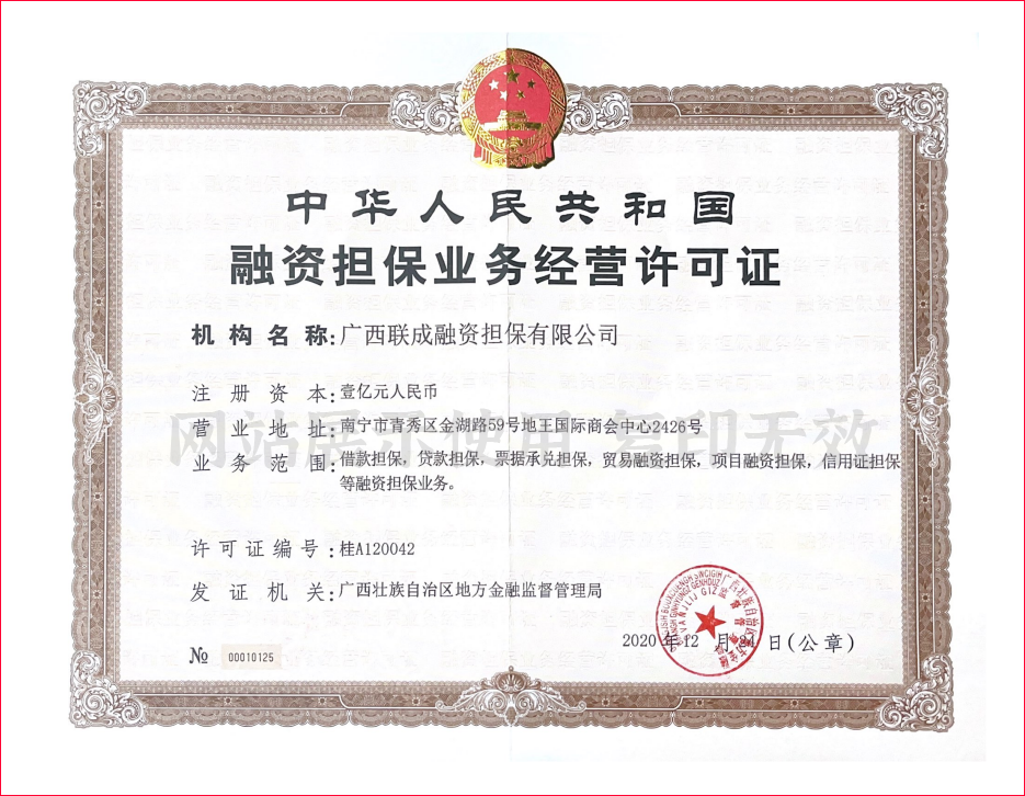 以下是融资担保公司的牌照和履约保函案例: